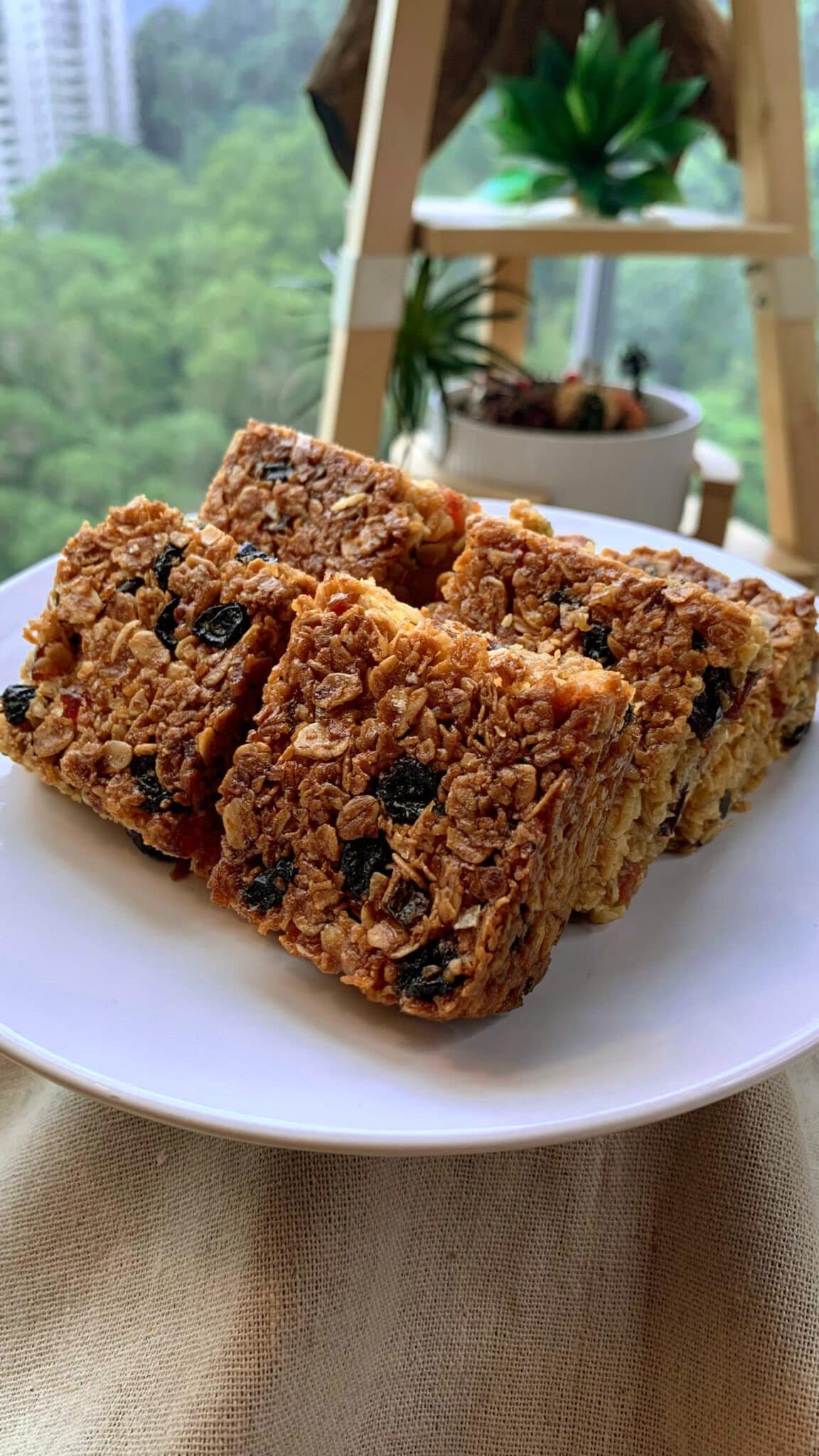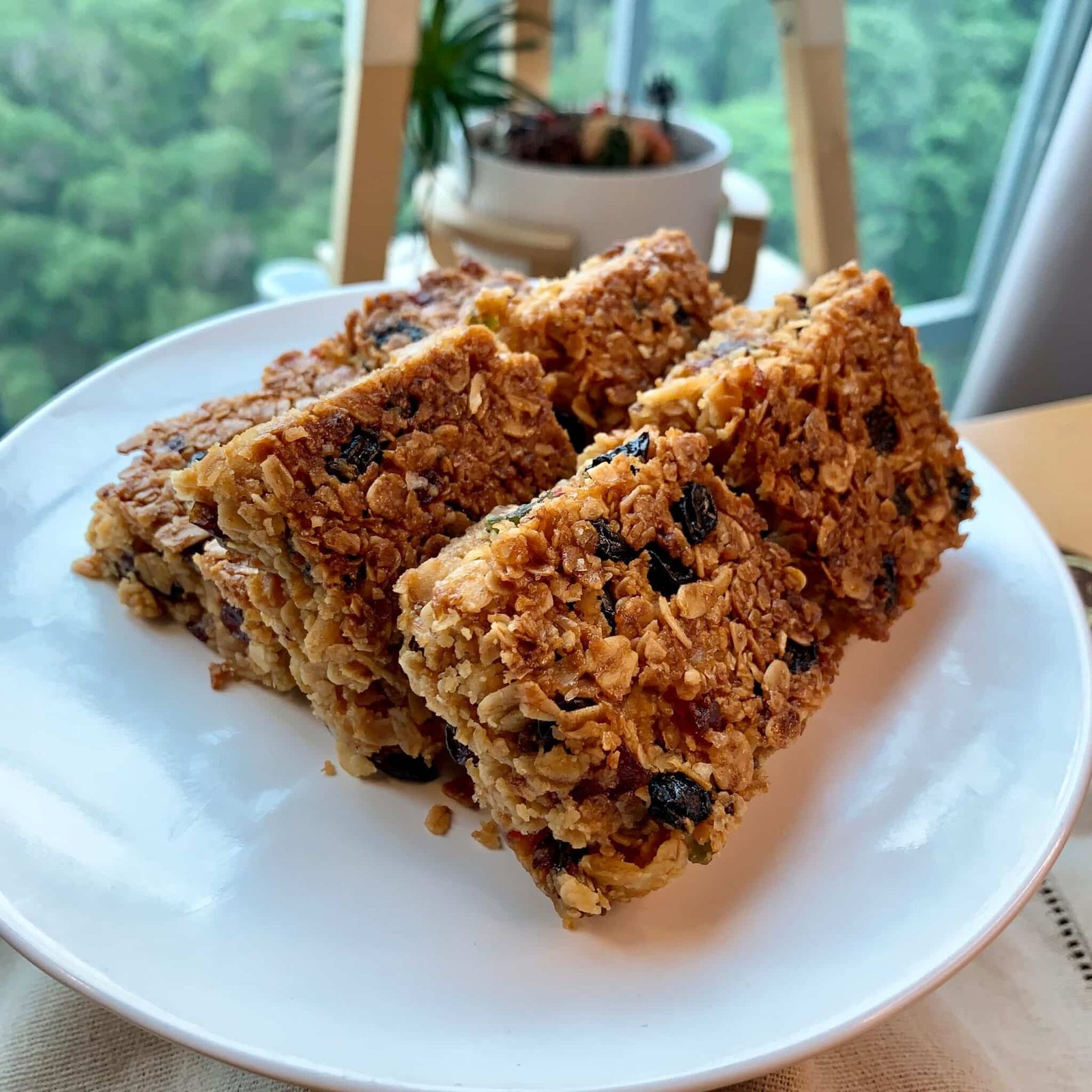 Golden, buttery, and delightfully chewy — our flapjacks are inspired by a favourite English snack made from rolled oats, butter, mixed dried fruits including sultanas and a touch of honey and golden syrup for that classic homemade comfort. Each bite is soft, satisfying, and just the right amount of sweet, perfect for tea time, on-the-go snacking, or sharing with family and friends. | 880g approx | 8" Square Pan | Pre-cut 16pcs