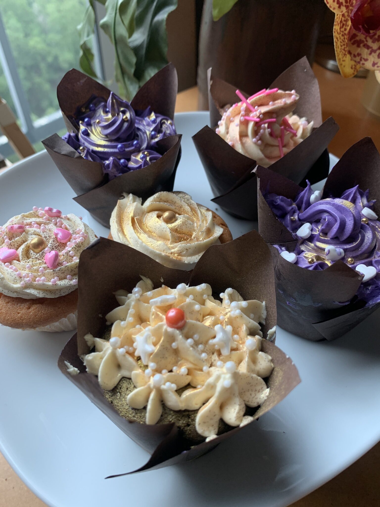 - Basic: Enjoy the simplicity of five classic flavors – vanilla, chocolate, pandan, red velvet, and strawberry – each topped with a smooth, semi-sweet Swiss Meringue Buttercream. These cupcakes are perfect for everyday indulgence.