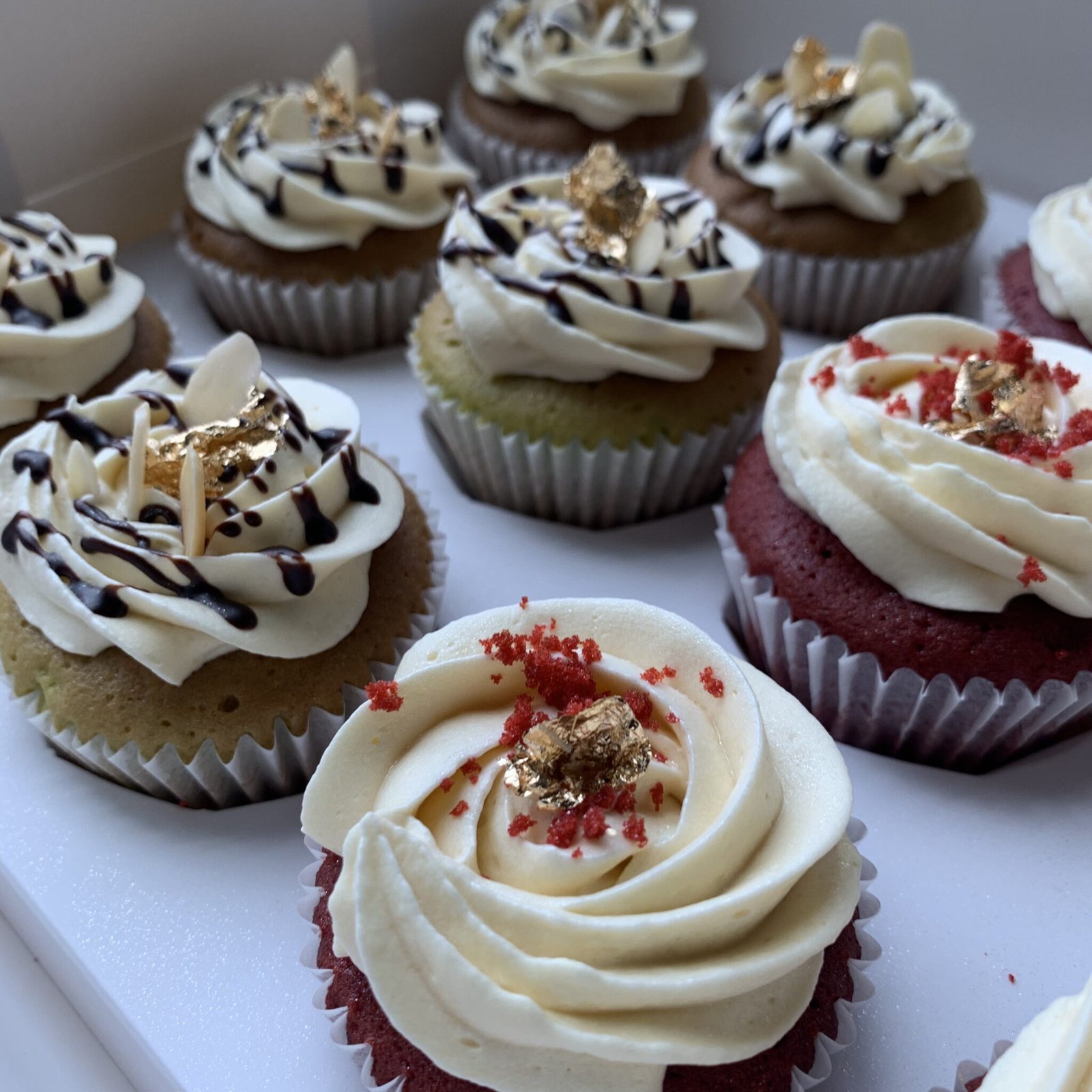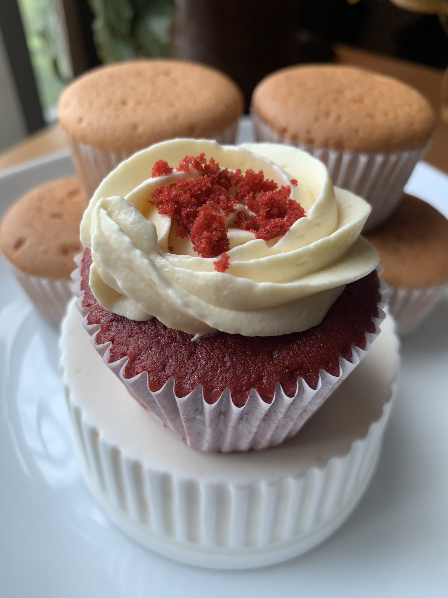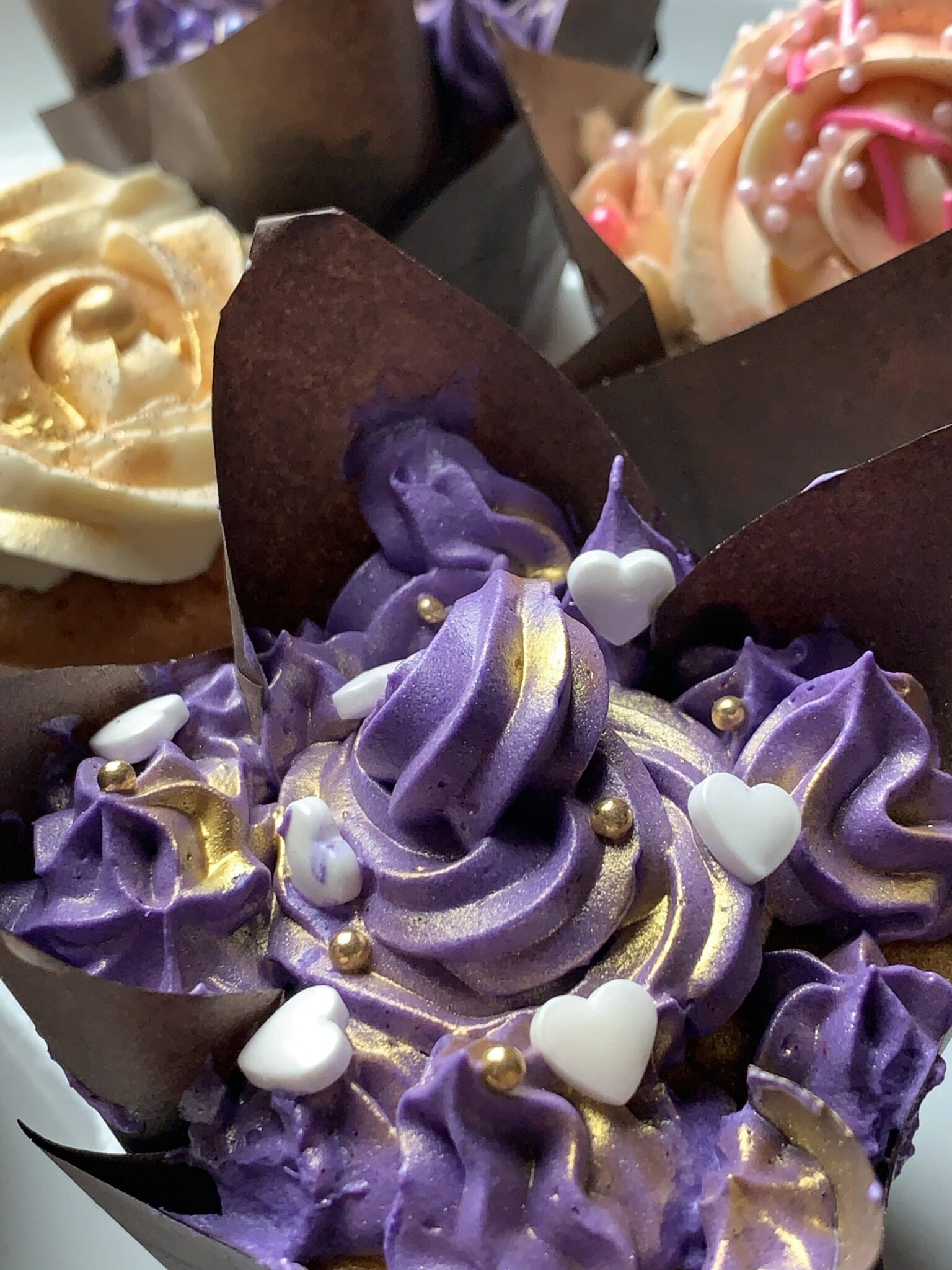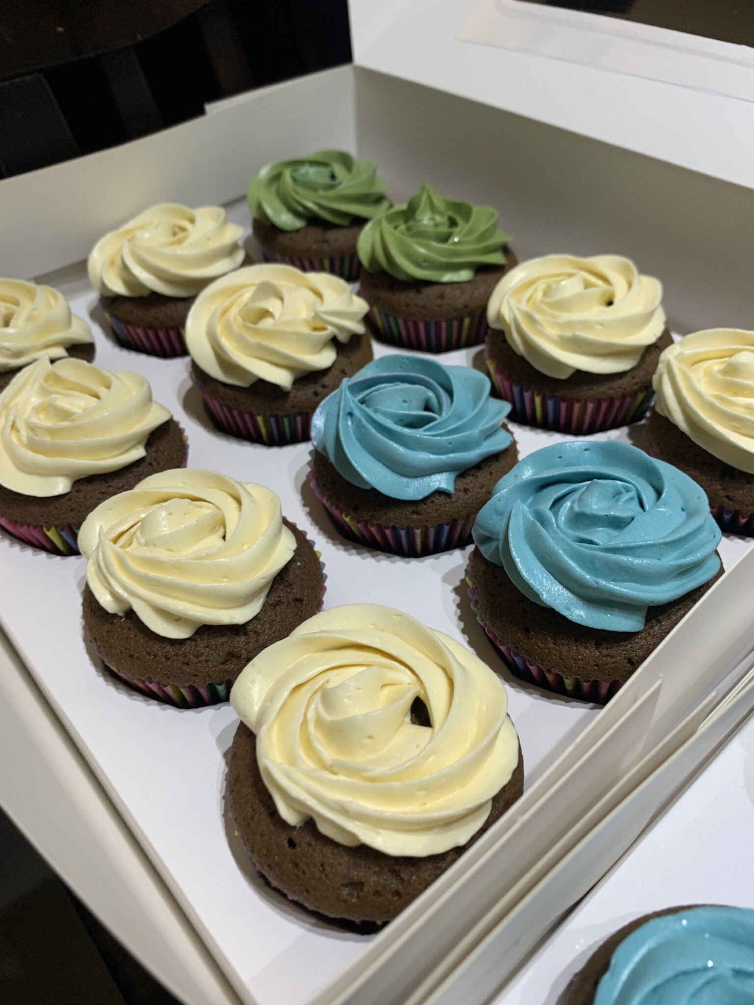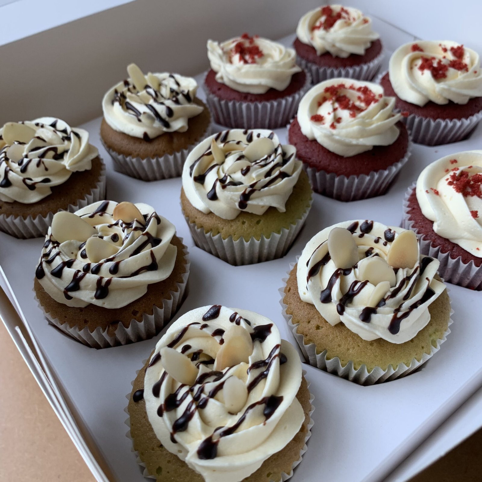 Base cupcake flavors that comes with smooth not too sweet Swiss Meringue Buttercream. All cupcakes comes in a box of 1 dozen pieces