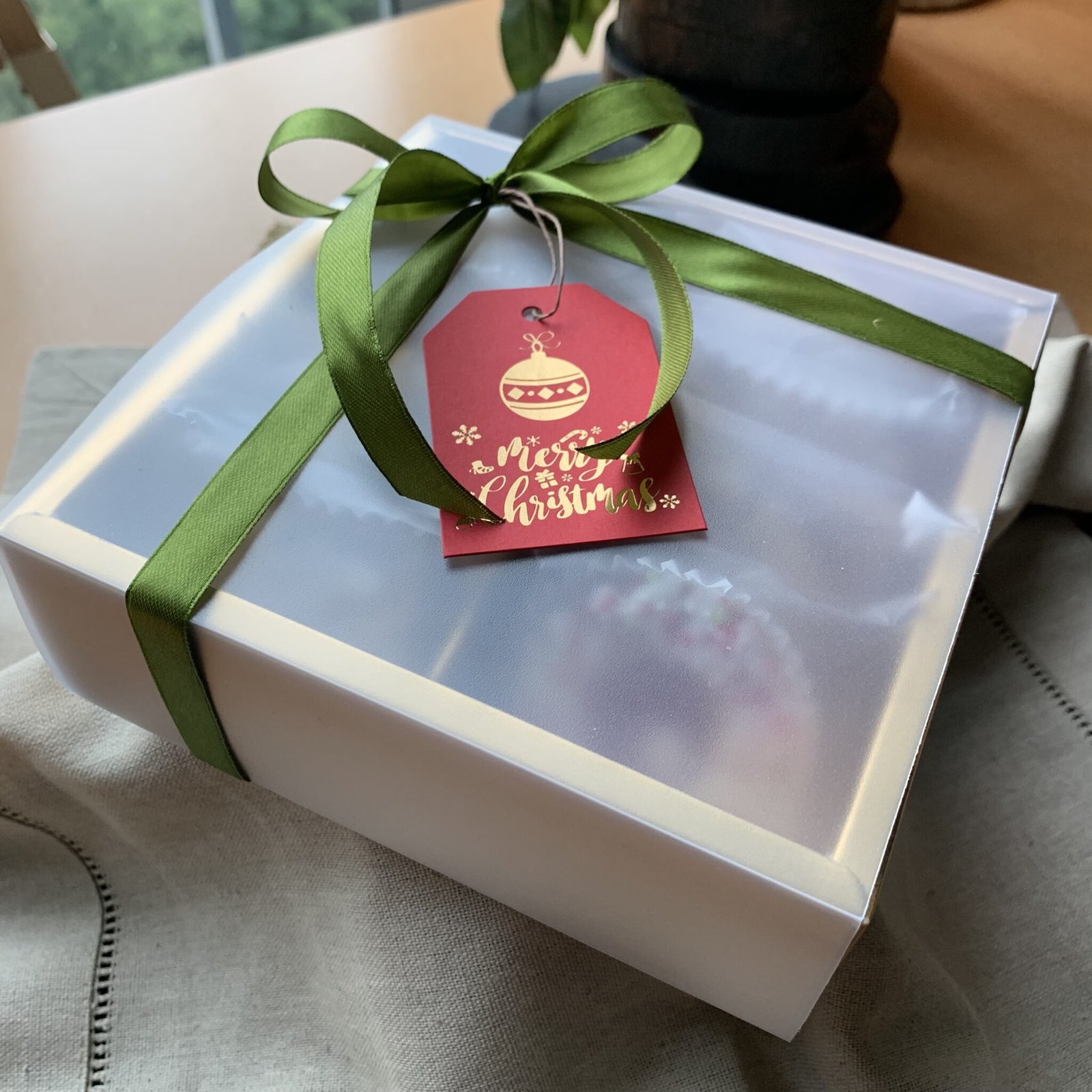 White box with window and ribboning